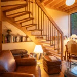 Malgré ces transformations contemporaines, l’âme de la longère a été préservée. Les matériaux traditionnels ont été conservés et restaurés lorsque possible, notamment les pierres de schiste caractéristiques. Les nouvelles ouvertures ont été pensées dans le respect des proportions d’origine, créant un équilibre harmonieux entre tradition et modernité.