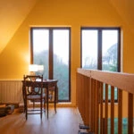 La métamorphose de cette bâtisse s’articule autour de deux interventions majeures : la conversion du garage en un lumineux salon et la création d’une imposante baie vitrée dans le pignon. Cette ouverture généreuse vers l’extérieur permet désormais à la lumière naturelle d’inonder l’espace de vie.